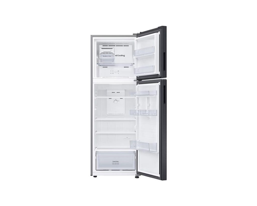"Experience maximum space, maximum cooling, and maximum style with the Samsung RT31CG5022B1ME fridge in black. Upgrade your kitchen with its all-around cooling and digital inverter technology for energy efficiency."